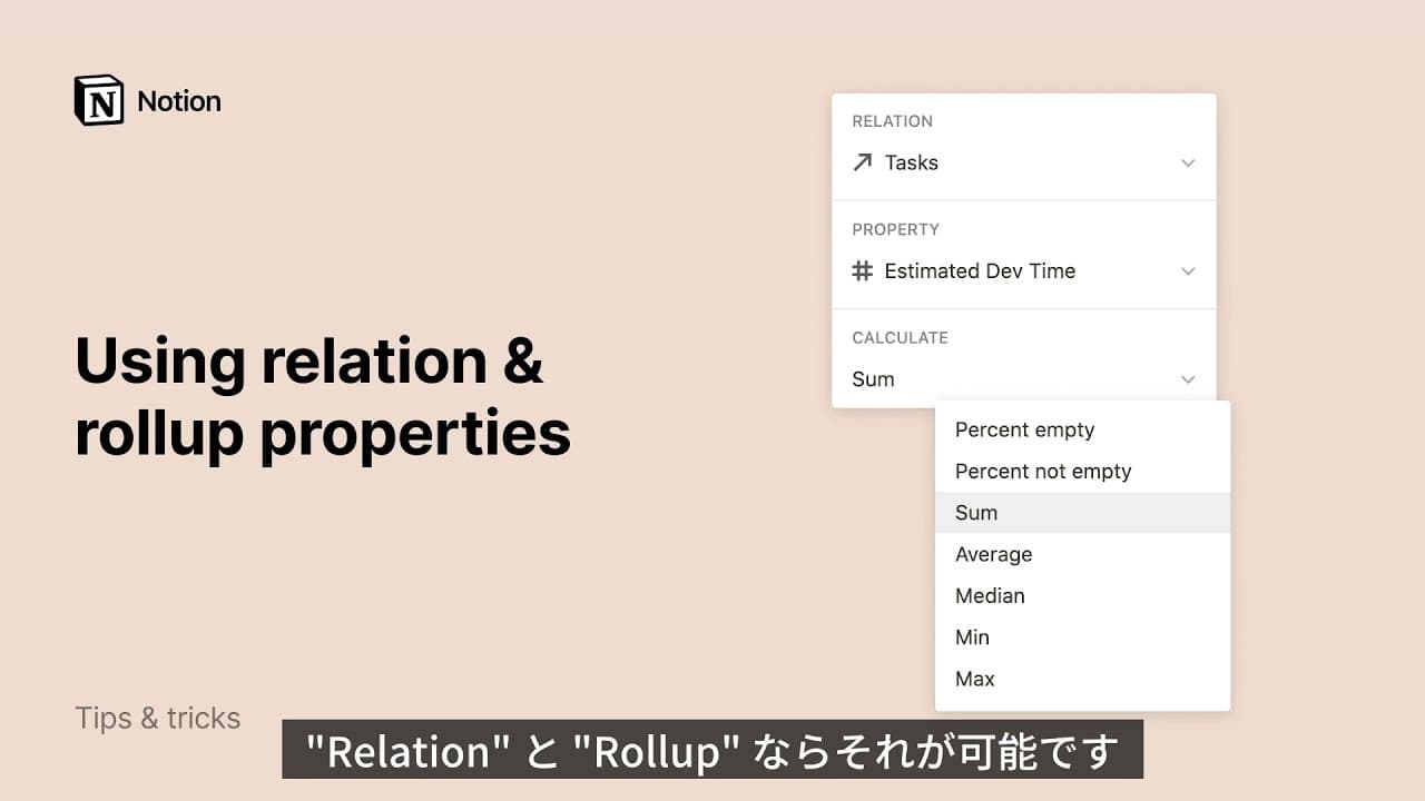 リレーションとロールアップ2つのデータベースの情報を一度に見たいこともありますよね。Notionデータベースのリレーション形式のプロパティを活用すれば、複数のデータベースからのアイテムを関連付けて様々な表現をすることができます 🛠